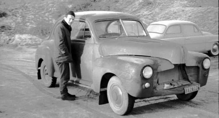 Det är Erik Landqvist som poserar vid sin ögonsten, en Ford coupé från 1947. Bilen har nästan allt som gör en bil raggarbilstuff: avsaknad av kofångare, ingen blank lack, men tufft brunprimad, motorhuven som var från en -42 års modell var "gälad" på översidan och i fronten hade det tills helt nyligen suttit en -42 års grill, men nu var även den bortmonterad efter en halkolycka, något som Erik var väldigt ledsen för.