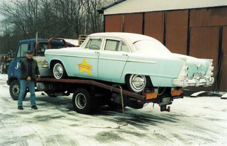 Det var ord och inga visor, men jag åkte i alla fall och tittade på bilen som var helt oskadd efter branden. Motor och växellåda saknades men det var ny klädsel. Glad över att bilen var så fin åkte jag hem för att samma dag kontakta Kalle Sandelius som med sin lastväxlare kunde hjälpa mig att få hem fyndbilen.