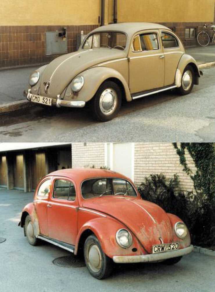 Bubblan från 1957 som räddades från skroten var i ganska bra skick men jag skaffade en reservdelsbil för säkerhets skull, visserligen en 54:a, men ändå.