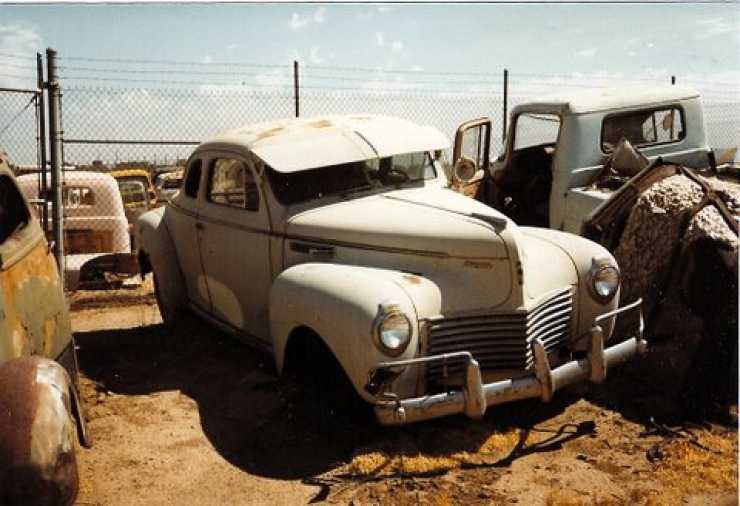 Chrysler 1940 5-fönster coupé med gangsterkeps och kofångarbågar.