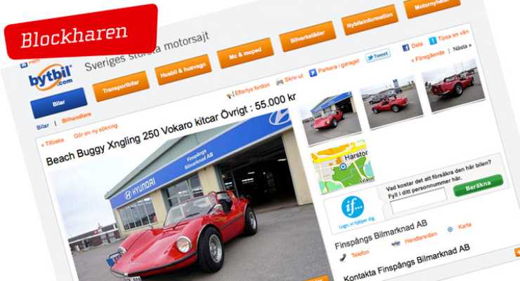 Bilen på Bytbil.com i fråga är en Beach Buggy byggd kortad platta från en -68 års Bubbla. Enligt annonsen är bilen byggd på nästan bara nya delar och motorn har gått 310 mil.
