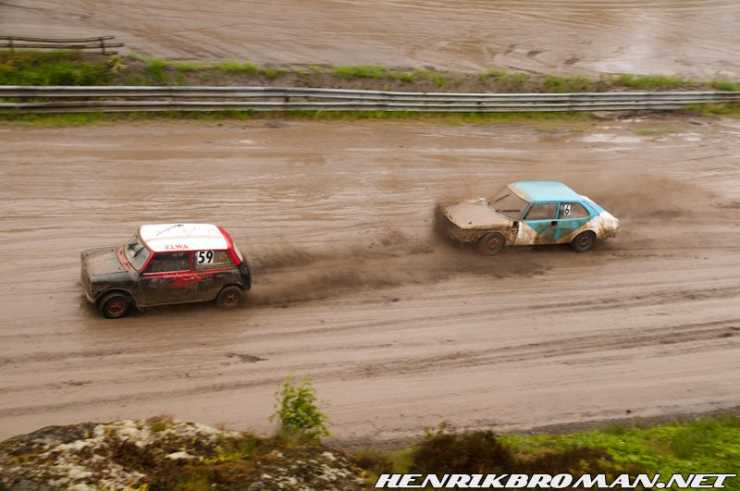 Det är läskigt att vara med och knuffas i starten, då känns det som hela bilen ska tryckas ihop och jag med den. Det är läskigt när en Saab kommer med full fart och ska köra om på yttern, det känns som att en liten knuff på bakskärmen räcker för att jag ska snurra bort mig eller kanske till och med rulla om jag har otur.