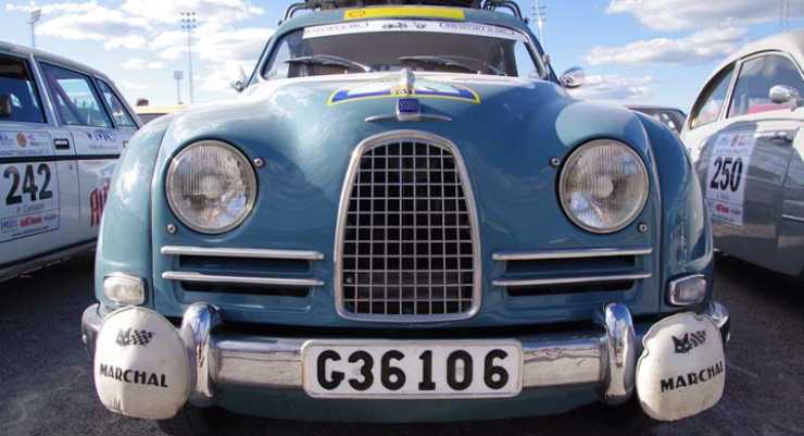 Vi kör med min "finbil" en SAAB 96 från 1961, den har en tvåtaktsmotor på 38 hästkrafter, 3 växlad låda (ettans växel är osynkad) och frihjul.