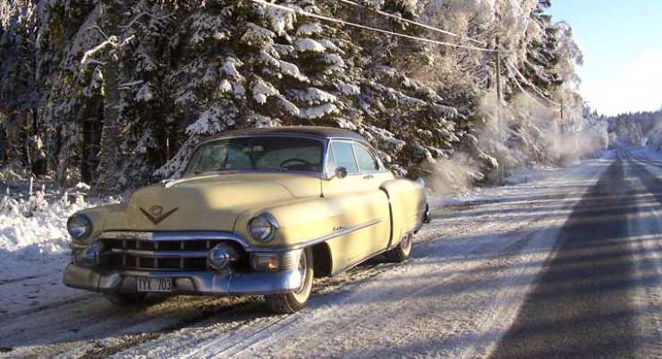 Micke i Ljungskile har en fin Cadillac coupe De ville från 1953. Han vidhåller dock att den inte körs särskilt ofta i vintertid, men bjuder det på soligt väder så får den ändå ut och lufta sig en och annan sväng denna tiden på året också, om inte annat så blir det ju fina bilder av det.