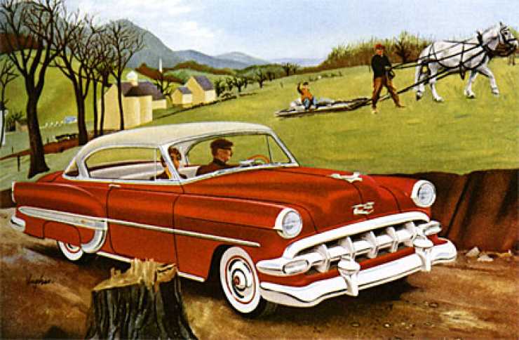 1955-års Bel Air palett. Från stationsvagn till cabriolet. För första gången i en Chevrolet fanns nu en V8. På 265 kubiktum och 162 hk SAE.