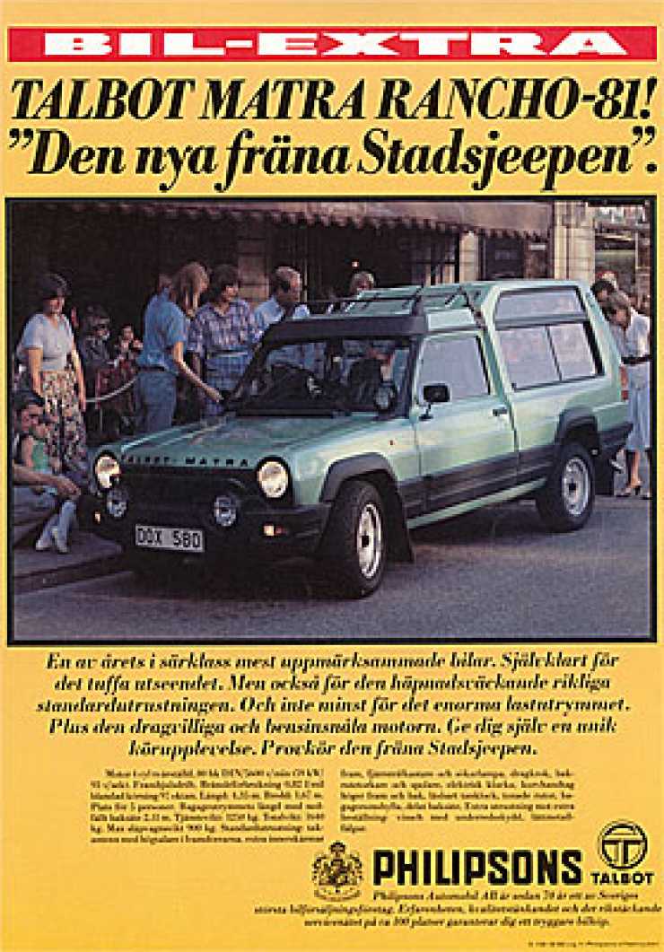 Philipsons myntade begreppet stadsjeep när Matra Rancho skulle lanseras. Exemplaret på bilden existerar fortfarande, men knappt. DOX580 står uppallad på en gård någonstans i Dalsland kunde vi rapportera i nummer 10/2009.