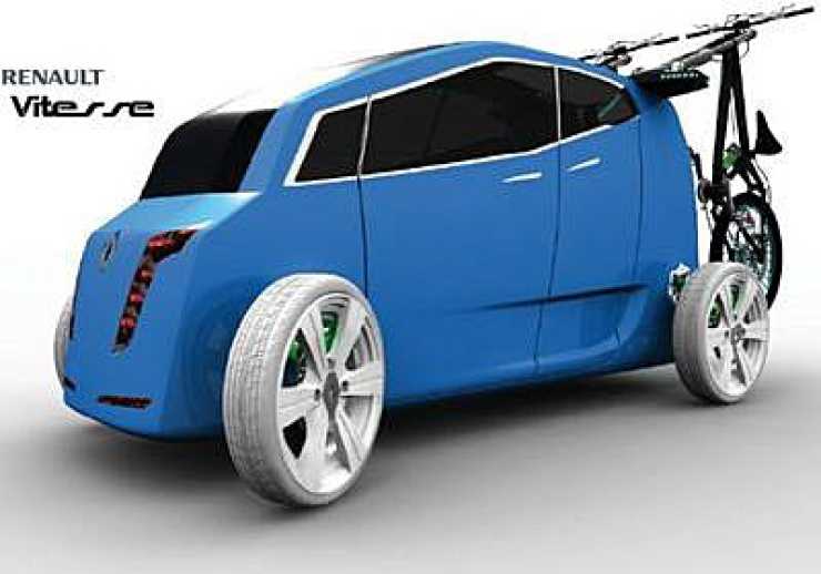 Renault Vitesse är en intressant framtidsstudie som istället för reservhjul är utrustad med en trampcykel. Bra att ha i de allt flera bilfria zonerna. Meningen är bilen skall drivas av bränsleceller och köra på automatiserade vägar. Föraren skall i princip inte behöva göra någonting.