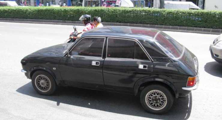 En blanksvart Austin Allegro med lika svarta rutor och feta tillbehörsfälgar - den måste tillhöra en riktig cooling. Morten Alleröd såg den i förra veckan på gatan i Bangkok och hann knäppa två bilder av den.
