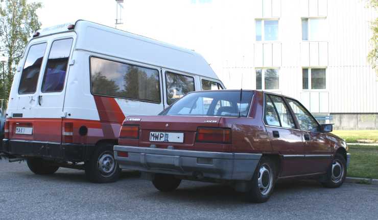 Sist men inte minst har vi en åter en bild från Umeå som jag knäppte nu i somras. Här stor en Renault Trafic, avställd sedan sju år, bredvid en Mitsubishi Lancer. Båda är av 1987 års modell.