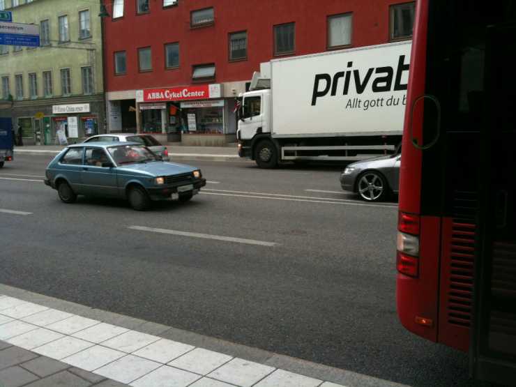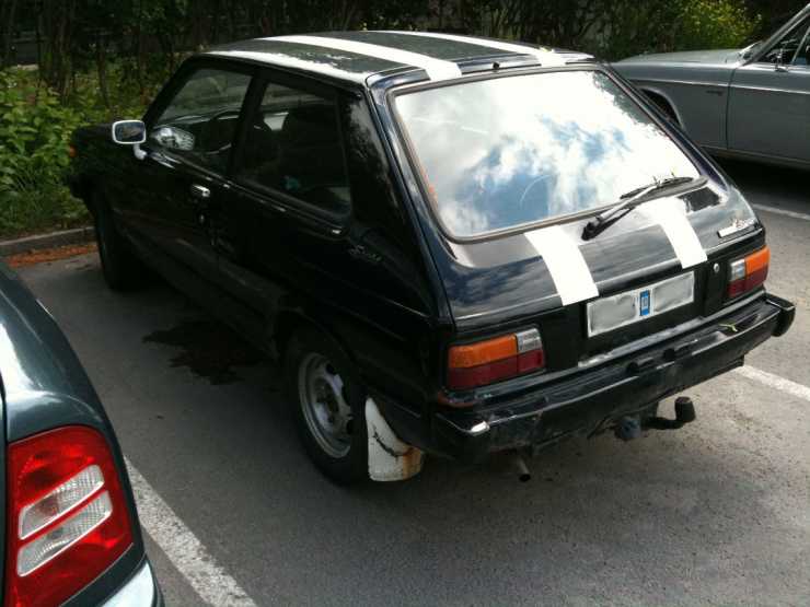 Den sista Starleten är också från 1984 och passerade mig när jag stod och väntade på bussen inne i Uppsala centrum. Den ser ju rätt skaplig ut men jag såg den en väldigt kort stund så jag vet egentligen inget om det. Fyra ägare har den haft och 16 000 mil har den gått i alla fall. Bilden är rätt dålig men bra med tanke på att jag använde mobilkamera och att bilen rörde på sig.