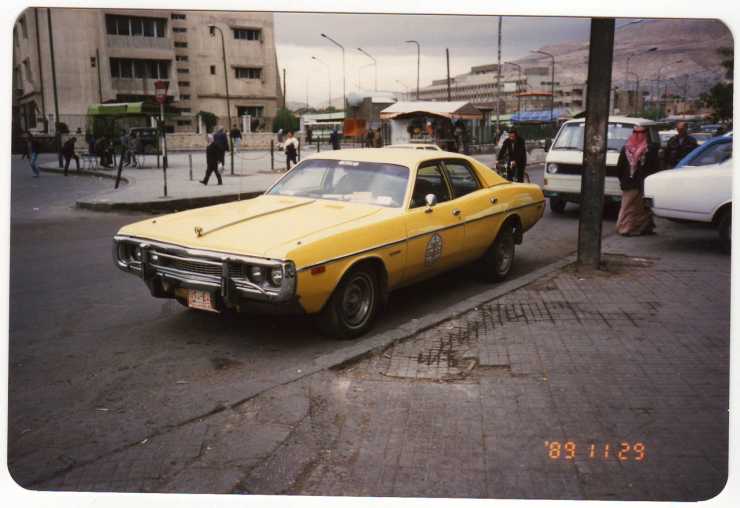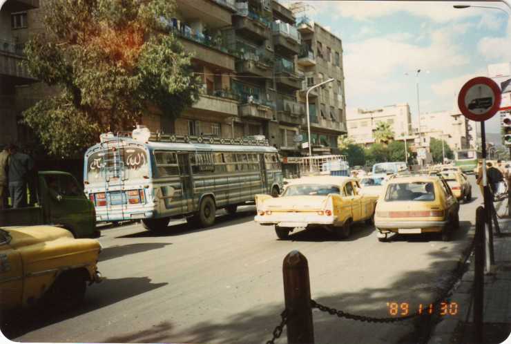 Vad som också förvånade med Damaskus var det stora inslaget av gamla amerikanska bilar. Dessa gick i stort sett uteslutande som taxi, och jag har varken förr eller senare fått någon förklaring till var de kommit från. Men nog gjorde man gärna någon taxiresa extra, bara för att ta chansen att åka klassiker. Interiörbilden med den glade chauffören är från Cheva -55:an som skymtar i vänsterkanten på en av bilderna.