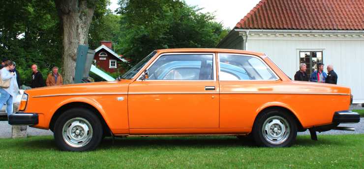 Vissa bilar trillar ur hanteringen på ett tidigt stadium. På Råda Säteri i Mölnlycke hålls bilträffar på tisdagar och förra tisdagen dök Zsolt Somi från Kungälv upp med en Volvo 242DL som stått undangömd i 38 år! 1975 hämtades denna nya orangea Volvo 242DL ut av en man som tyvärr bara hann använda den sparsamt i två år innan han gick bort. Familjen ställde undan bilen, tacksamt nog i ett varmt och fint magasin, där kom den att stå ända fram tills häromåret när den plockades fram i dagsljus igen. Mätarställningen visar blygsamma 1820 mil, tre av Trelleborgsdäcken är original från fabrik, det fjärde... är reservhjulet!