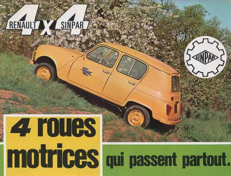 Sinpar startade 1946 med att bygga in fyrhjulsdrift i främst Renaulter. Egentligen var det en återstart för Sinpar hade perioden 1907-1914 byggt egna bilar. Både tyngre kommersiella fordon och små Renaulter som ovan kunde fås med fyrhjulsdrift via Sinpar, vars namn är en slags fonetisk variant av Sans Pareil, som betyde utan motsvarighet.
