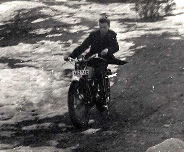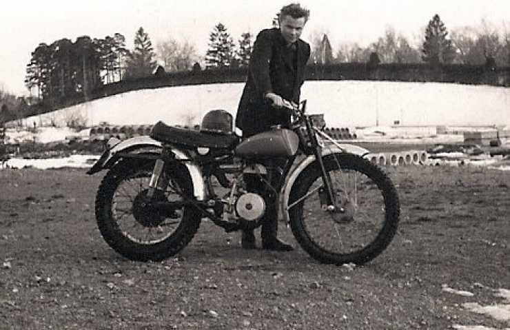 Vi klarade oss för det mesta själva och fick ibland tips av "Rydde" som vi kallade honom. Själv byggde Rydde en crossbåge med Williersmotor. I april månad 1960 var det så dags för provkörning. En grusgrop, där i dag Dalens bostadsområde är beläget, kom väl till pass. På första bilden poserar jag stolt, iklädd min brevbäraruniform som jag gratis tillhandahållit på min arbetsplats kungliga Postverket.