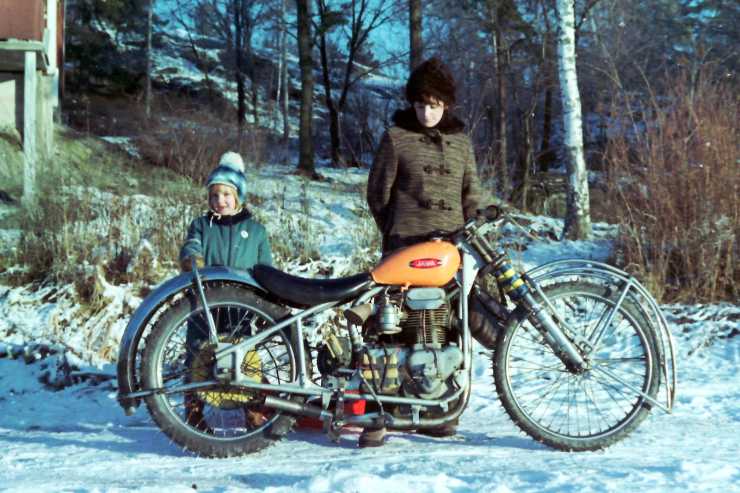 var bäst i Sverige. Inför 1971 var det dags för Kurt att testa en nyare ramvariant varvid jag blev erbjuden att köpa fjolårshojen. Jag blev glad och slog till, men min dåvarande fru Gerthy ser inte så road ut. Kanske undrade hon var hon skulle sätta fötterna, det fanns ju inga fotpinnar där bak.