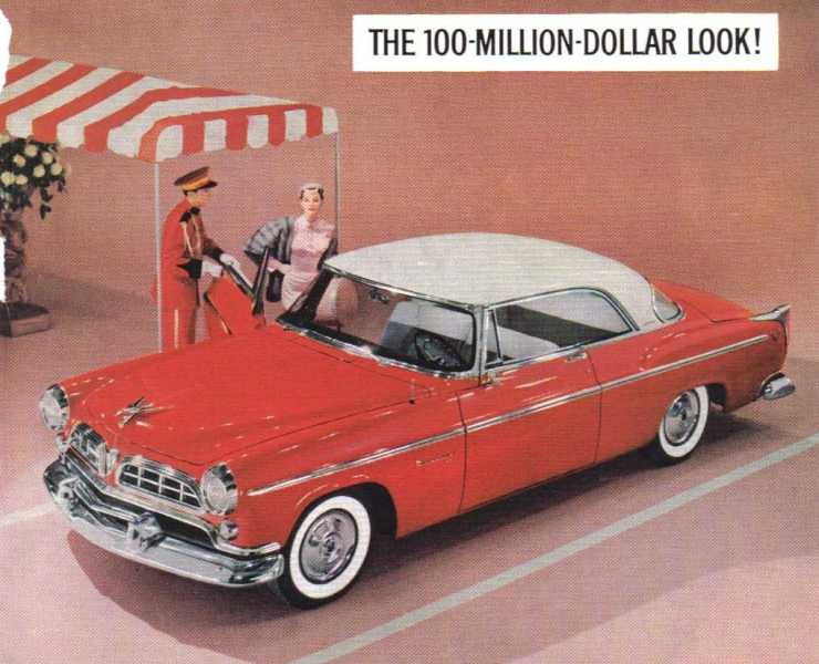 Så här flott lanserades Chryslers nya modeller för 1955. Hela modellprogrammet hade gjorts om inom koncernen och detta hade kostat en hel del. Den helt nya designen var signerad Virgil Exner, och kom att presenteras som "the 100 million dollar look". Huruvida den siffran hade någon förankring i verkligenheten kan diskuteras, men utveckla nya modeller då som nu innebar enorma investeringar. Chrysler ökade dock sin försäljning från föregående års 105030 bilar till 15277 stycken detta år. Dodge och De Soto nästan fördubblade sina siffror.