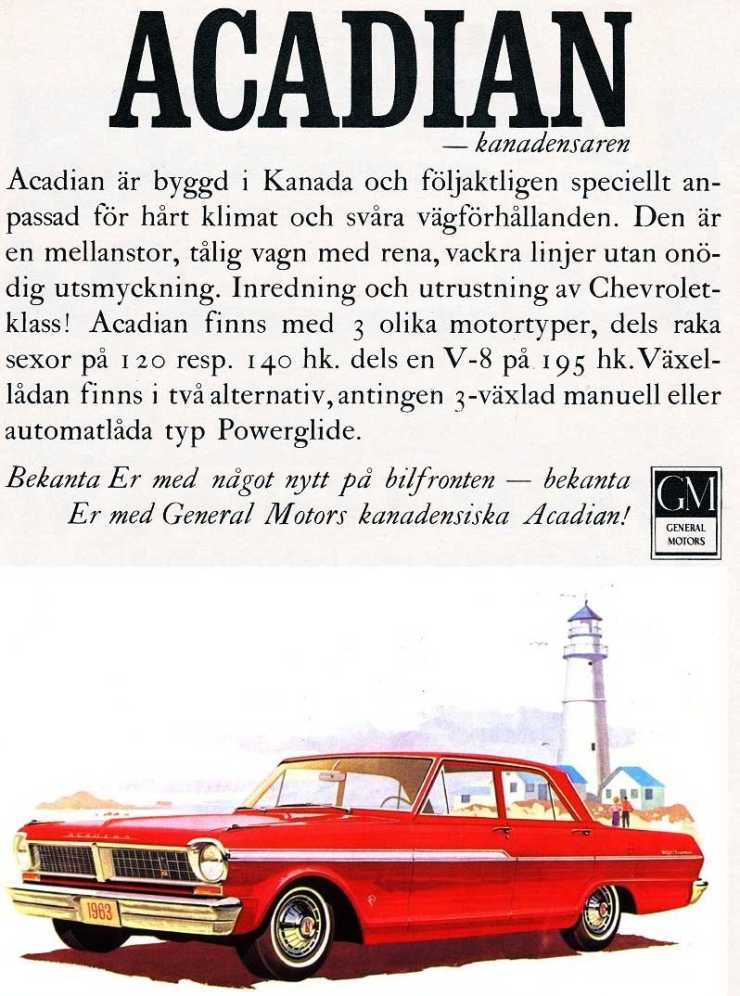GM Nordiska tog in dessa Acadians 1963 och 1964 med sloganen - Byggd för ett klimat likt vårt.