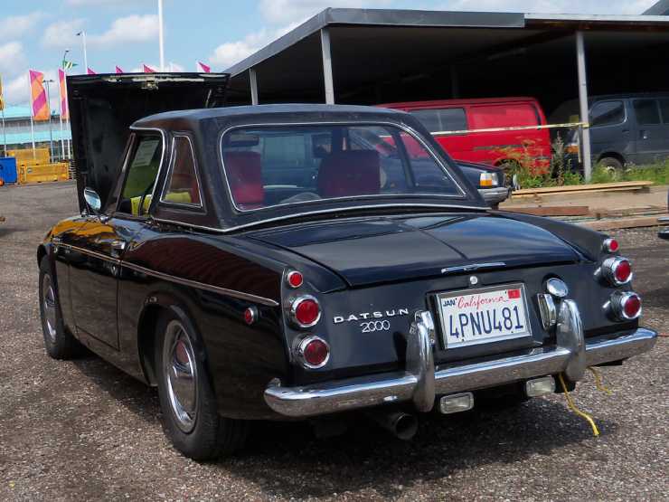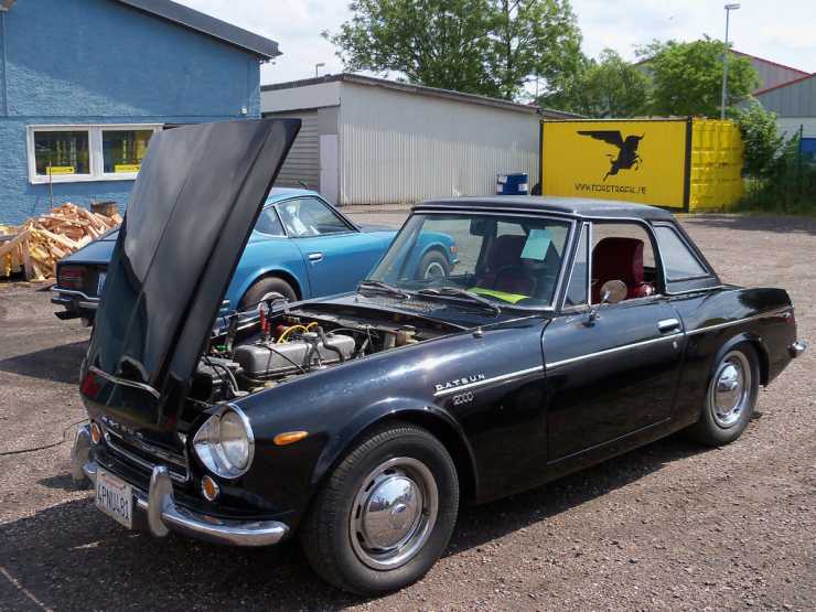 En mer främmande fågel dock är denna söta Datsun 2000 roadster från 1969. Datsuns sportmodeller med början från 1960 är ganska okända här. 1963 fick modellen facelift och hette då 1600 Sports, 1967 kom den större 2000 Sports med 2-liters OHC-motor på 135 pigga hästar och femväxlad låda vilket var mycket ovanligt då. Denna 2000 är av 1969 års modell.