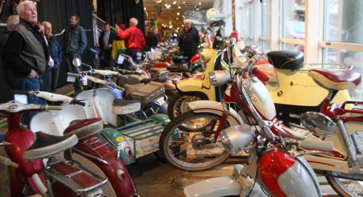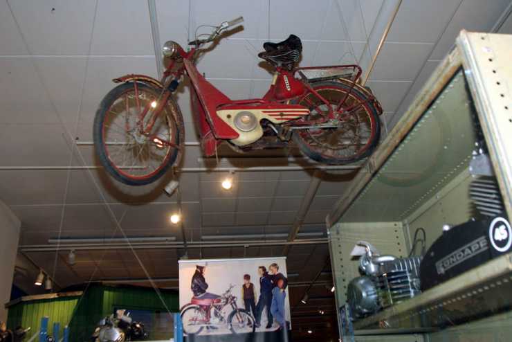 En unik del av utställningen är 50 helt nya mopedmotorer som museet har i sin ägo. De lämnades av tillverkarna för att typprovas och har sedan dess legat orörda, en guldgruva för renoverare. Invigningen skedde som sig bör fullt ståndsmässigt. Invigningstalaren och mopednostalgikern Jan Raihle, chef för Dalarnas museum körde genom publiken på moped och slet på så sätt av bandet. Detta sedan han berättat sina egna upplevelser som 15-åring.