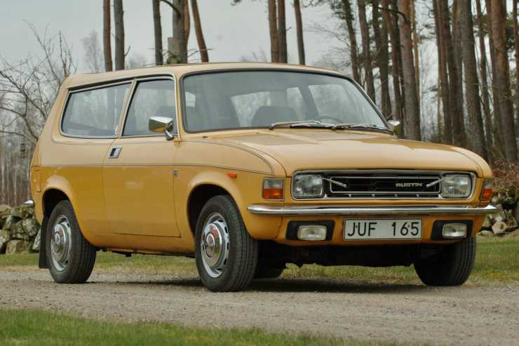 Austin Allegro fanns i flera skepnader, det vill säga karossformer – men ändå är det den fyrkantiga ratten som etsats in i det kollektiva medvetandet. Frän men inte så himla praktisk så Austin själva bytte ut den mot en konventionell rund kringla. En sån sitter det i den här Allegron. Tråkigt? Näe, den har ju istället den superfräcka kombikarossen!
