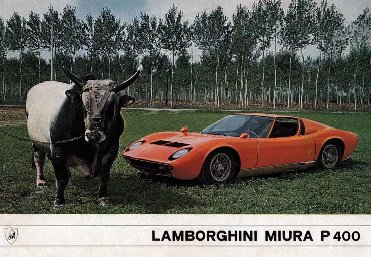 Här började också Lamborghini med sitt signum, att döpa bilar efter berömda tjurar, Miura är en ras av kamptjurar från Ganadería Miura i Sevilla. Av bilen Miura byggdes det 765 exemplar av mellan 1966 och 1974.