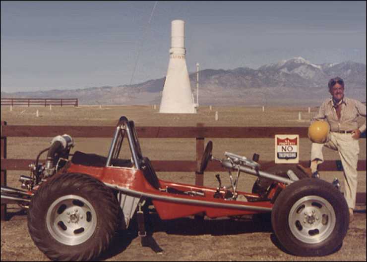 En som hakade på trenden var ingen mindre än designern Raymond Loewy, som syns här med vad som ser ut som en modifierad Meyers Tow'd, en av flera Buggymodeller av upphovsmannen till hela flugan, Bruce Meyers.