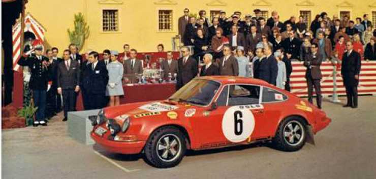 På stora bilden syns Björn Waldegårds Porsche vid prisutdelningen efter Monte Carlo-rallyt 1979.