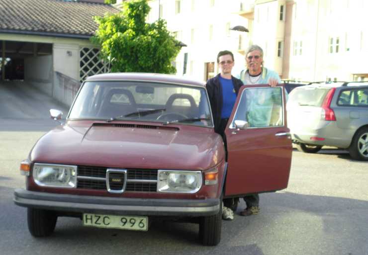 Vi såg också en "bajsbrun" 99 från Nyköping. Den vurmar vi lite extra för, för den är vi ägare till nu. Vi var i början av juni 2010 på hamnträff i Nyköping med tema Svenska Bilar. Vi var där med Östgöta Saab-klubb. Det kommer fram en dam till mig och berättar att hon har en fin Sabb 99 från 1974 som hon funderar på att sälja och undrar om vi som verkar tycka om Saab vet någon som vill bli ägare till den. Vi lovar att fundera och får hennes telefonnummer.