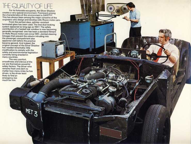 Men bara för att det var en standardprodukt, så var det inte på något vis en sämre bil, karaktären var annorlunda, men utvecklingsarbete bakom Silver Shadow var antagligen det mest rigorösa som gjorts i Rolls långa historia, nya metoder och ny teknik skulle utvecklas, och den skulle odiskutabelt behålla sin förstaplats på prestigelistan . Det gjorde Silver Shadow, och i sann Rollsanda som en av världens i särklass bästa bilar. Det sägs att en Shadow innehåller mer än fem gånger så många delar som en vanlig bil, den har detaljer och system som saknar motsvarighet i andra bilar. Motor och låda var inget märkvärdigt, den ärvde den beprövade V8:an från Silver Cloud, nu kopplad till Chevrolet automatlåda. Men runt detta byggdes en på alla sätt modern bil, som ändå behöll traditionella värderingar.