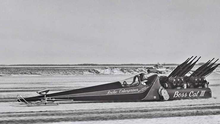 Boss Cat III, renodlad dragster på skidor, motorerna bak satt parvis och var motroterande.