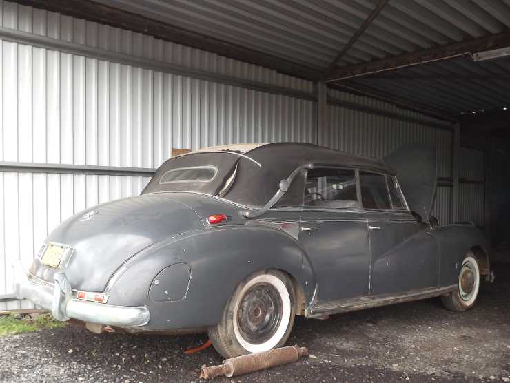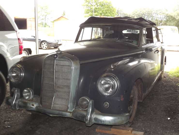 Mercedes flaggskepp 300 kallas ofta för Adenauer-modellen, då tysklands kansler Kondrad Adenauer ofta och gärna åkte dessa pampiga vagnar. Den fyrdörrars öppna varianten var ganska ovanlig, 642 stycken gjordes 1951-55 och var ofta specialbeställningar för statschefer och liknande som ville ha öppna paradvagnar. Mercedes Benz 300 byggdes fram till 1962, och efter 1955 beställdes bara 65 stycken till sådana här öppna vagnar. Denna är en 55:a och tillhör den tidigare varianten.