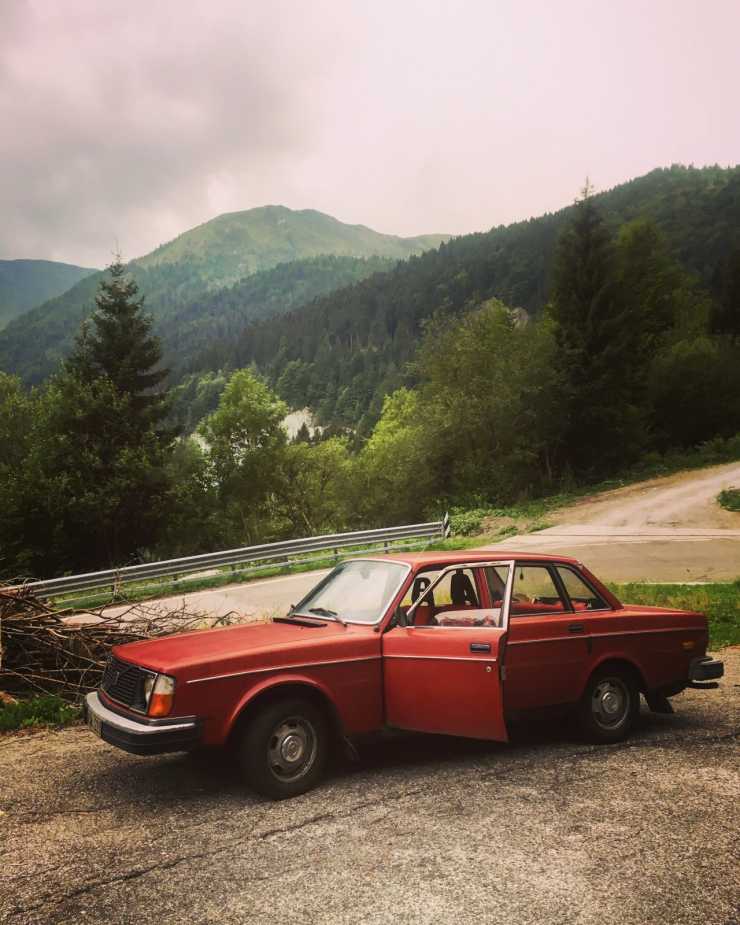 Bilen har röd inredning och är helt original från backspegel till fälg. Ena bilden är från en 500 mil lång Europaresa i somras, tagen i österrikiska alperna.