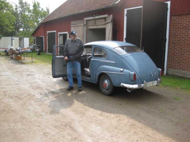 Det blev full kommers, folk köpte allt möjligt, säkerhetsbälten, gummimattor till bagaget PV, bromstrummor, kromade hjulmuttrar original i nyskick! Själv stod det ett oanvänt 2" rally avgassystem och vilade i ett hörn i ladugården. 600 kr fattigare blev jag och bagaget fylldes.