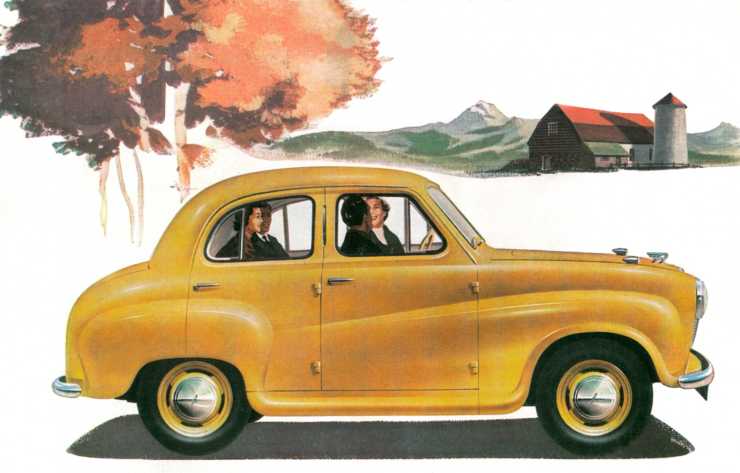 Men i bilbroschyrens värld existerar inte det problemet. Även i en diminutiv Austin A30 finns det gott om plats för fyra elegant klädda vuxna. Att de slutade växa i 12-årsåldern är inte bara en fördel, utan en förutsättning. ”Förvånansvärt rymlig” är en fras som återkommer i texterna.