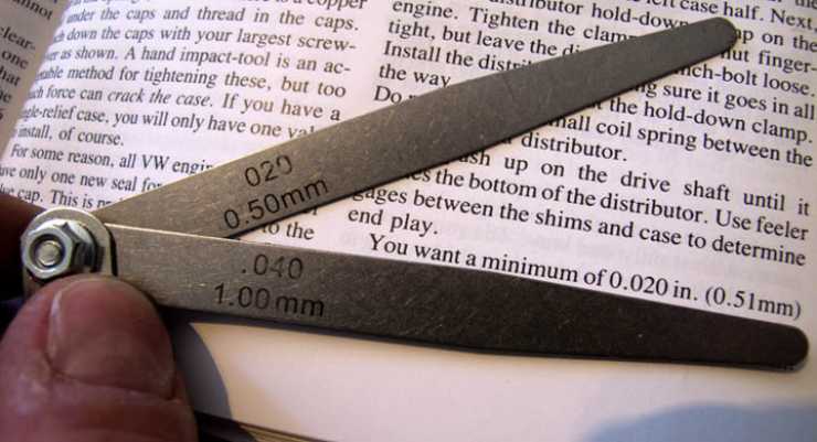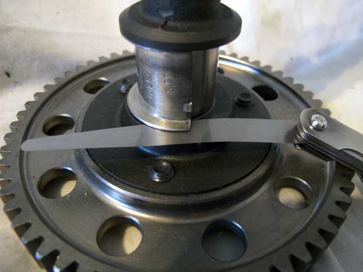 Enligt verkstadshandboken är ett spel på mellan 0.04 till 0.13 mm acceptabelt. På gränsen till vad som är mätbart med vanliga bladmått. Efter lite justering med våtslippapper får jag precis in ett 0.10-blad.