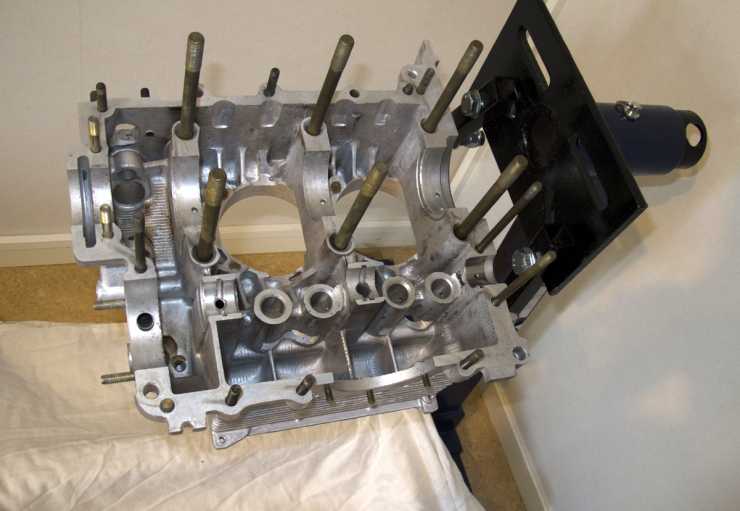 Ett motorblock till en Volkswagen boxermotor skiljer sig från de flesta andra motorblock i det att det är delat på mitten. Lösa lageröverfall saknas, var motorblockshalva bildar istället lageröverfall.