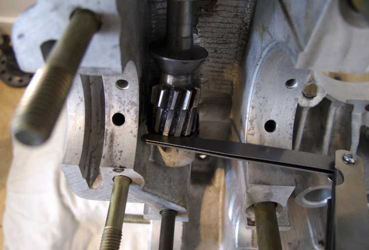Fördelardrivningsaxeln driver på en standardmotor även bränslepumpen via en stötstång. Eftersom den här motorn får bränsleinsprutning med elektrisk pump blockeras bränslepumpens hål i motorblocket. Men shimsningen kommer man inte ifrån.