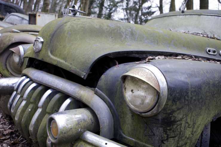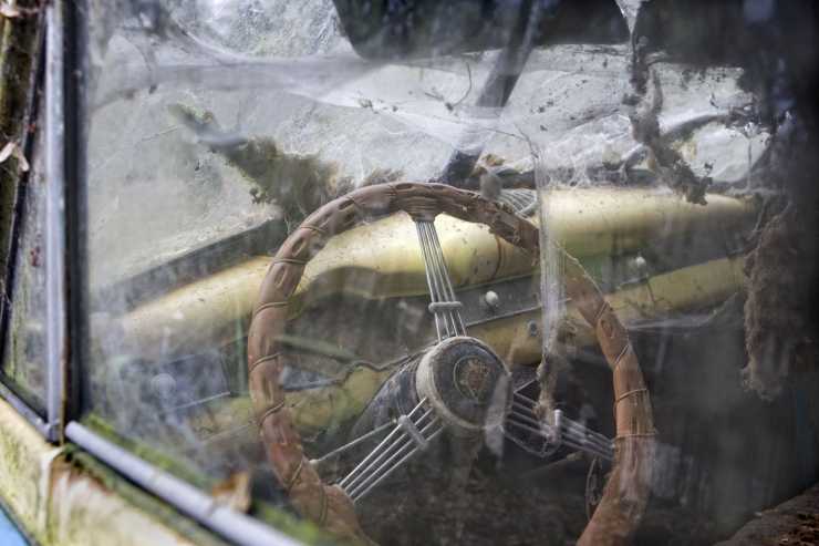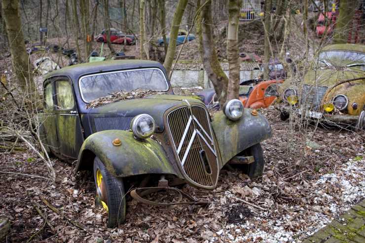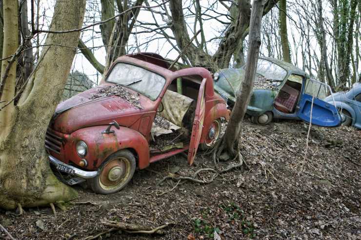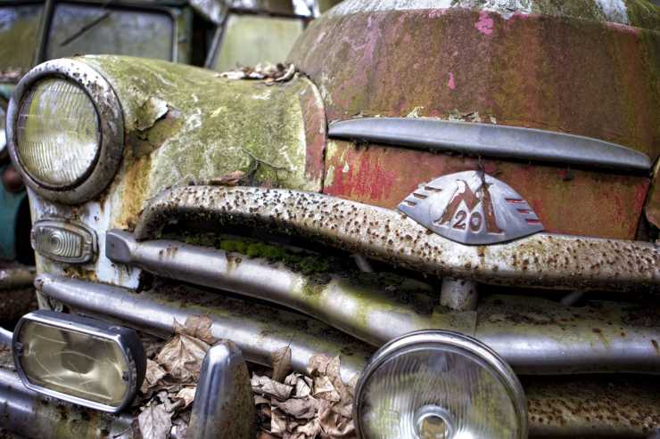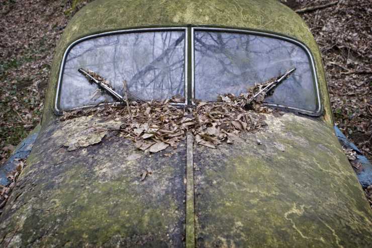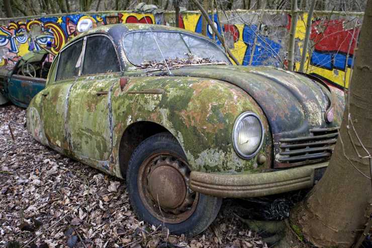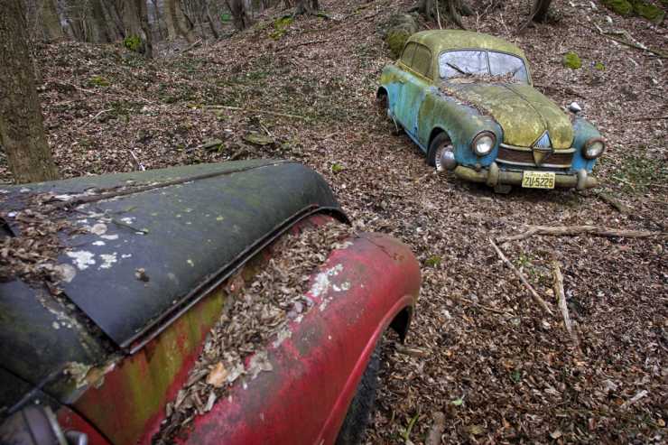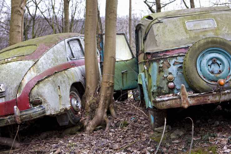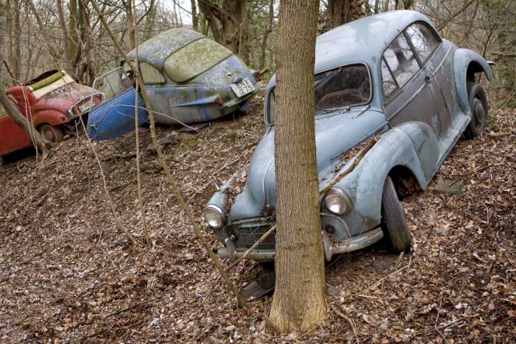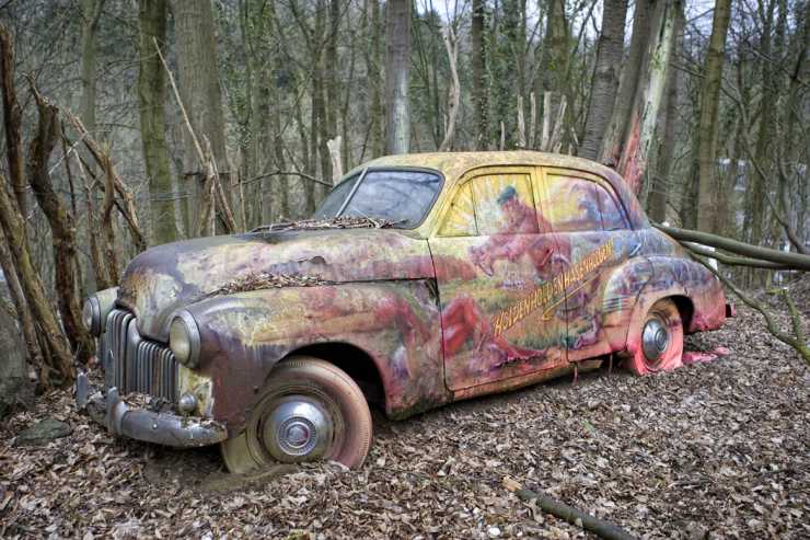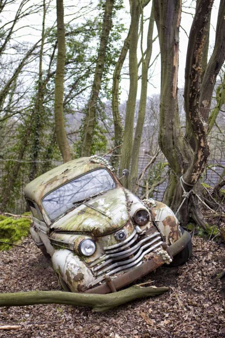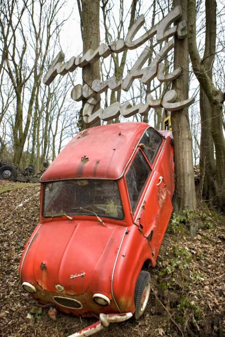 I Sin trädgård i Neanderthaal utanför Düsseldorf har Fröhlich skapat "Auto Skulpturen Park".
